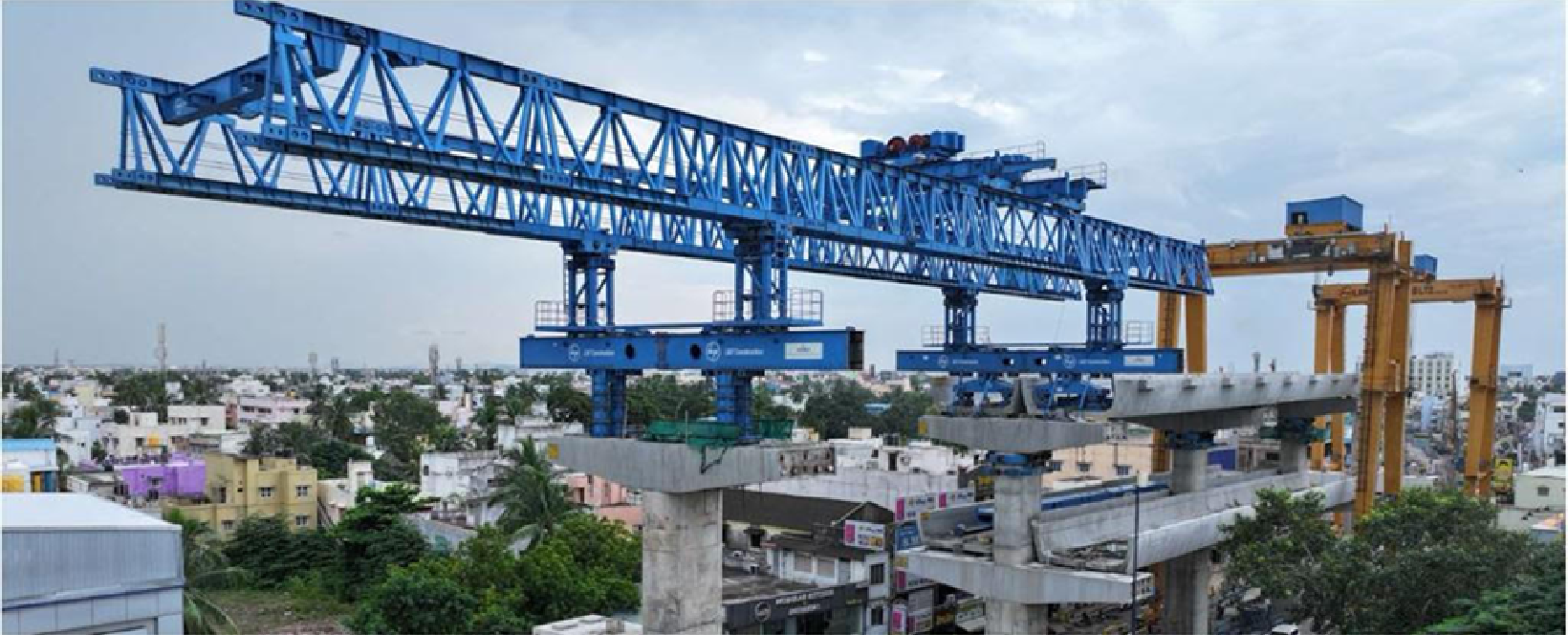 The Bridge launcher is used to lift and support bridge segments or girders as they are placed while being supported by the bridge piers instead of the ground.